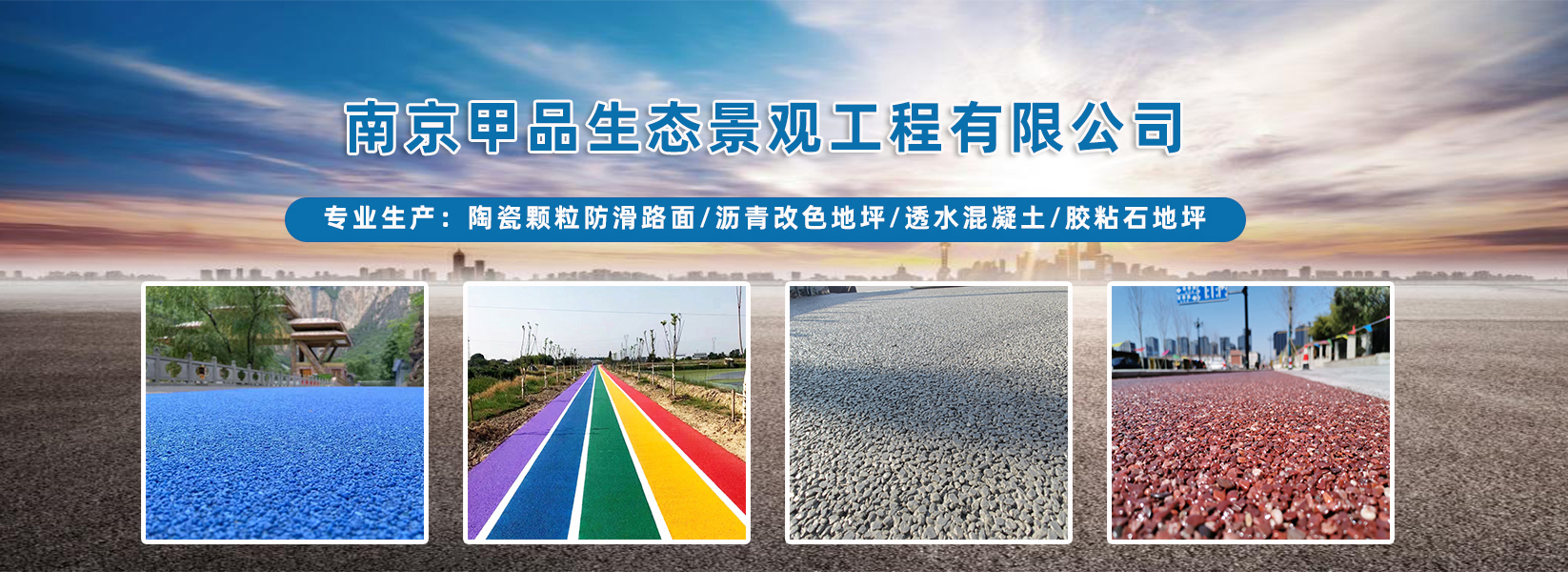 南京甲品生態景觀工程有限公司專業從事地坪材料生產、銷售、地坪施工與技術咨詢為一體的企業。可以同時生產施工各種規格、各種顏色、各種不同的透水率路面,我們保證達到客戶的要求,做出各種圖案花樣效果圖,及時供應各種材料,直接現場施工,價格、質量比同行具有競爭優勢。 甲品地坪主營產品有:地面防滑彩色陶瓷顆粒、粘接劑、地坪材料、環氧地坪漆。工程施工服務包括:陶瓷顆粒防滑···